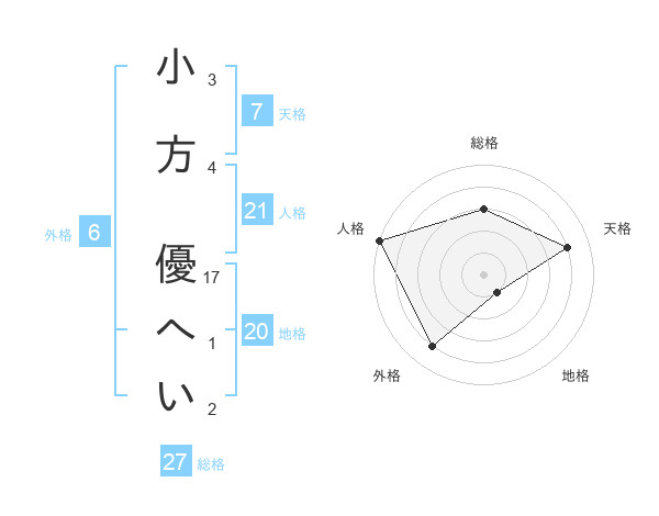 占い結果は姓名判断である以上、良い場合も悪い場合もありますが、決してお名前を誹謗中傷するものでなく、画数の自動計算によって得られたものです。また、本サイトの検索によって得られた鑑定結果で、第三者を誹謗中傷したり名誉を棄損するような行為を禁じます。