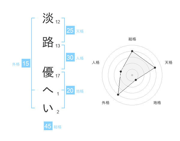 淡路 優へいさんを姓名の画数から五運を鑑定