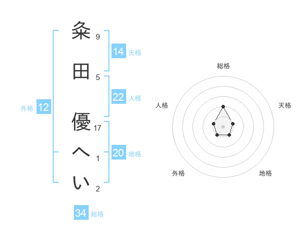 粂田 優へいさんの総格は34画の2点!