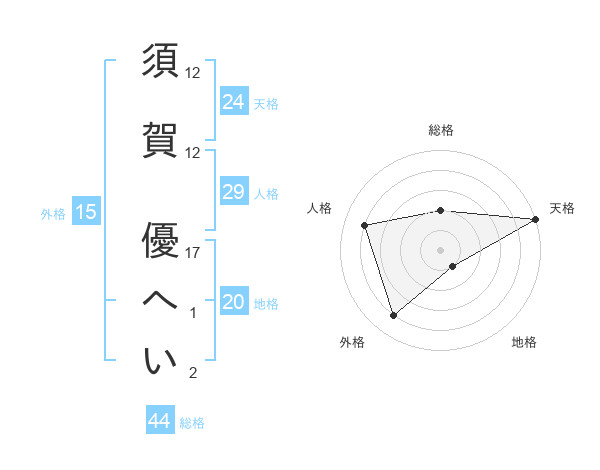 須賀 優へいさんの総格は44画の2点!