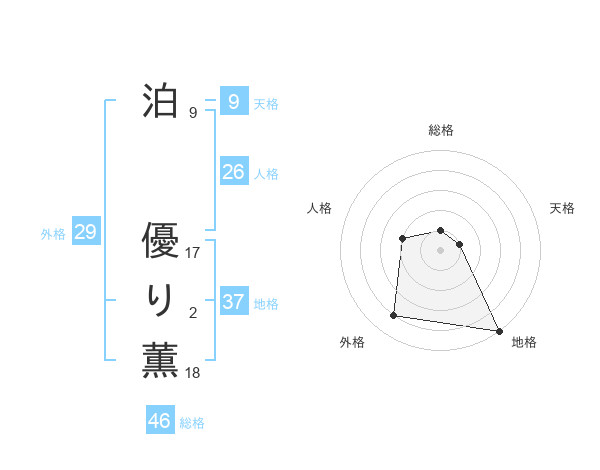泊 優り薫さんの総格は46画の1点!