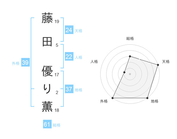 藤田 優り薫さんを姓名の画数から五運を鑑定