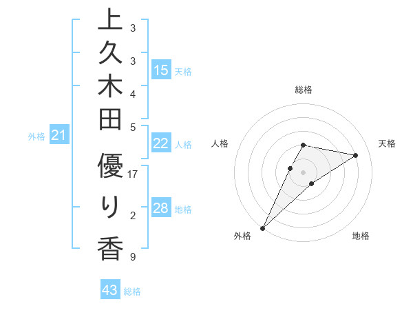 上久木田 優り香さんの総格は43画の2点!