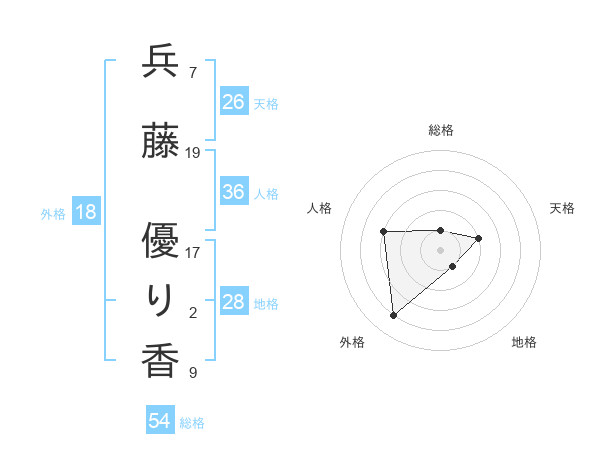 兵藤 優り香さんを姓名の画数から五運を鑑定