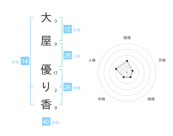 大屋 優り香さんを姓名の画数から五運を鑑定