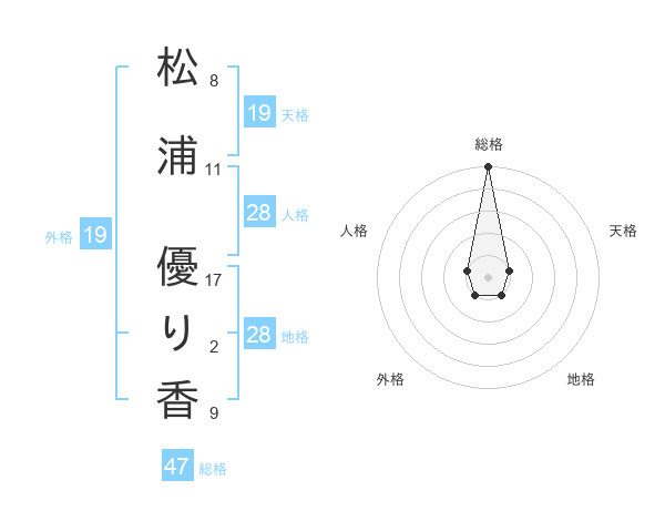 松浦 優り香さんの総格は47画の5点!