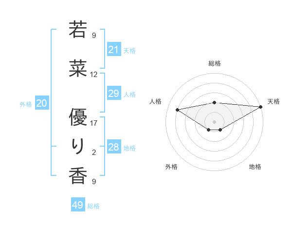 若菜 優り香さんを姓名の画数から五運を鑑定