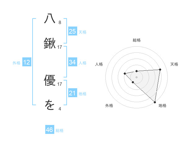 八鍬 優をさんの総格は46画の1点!
