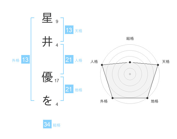 星井 優をさんの総格は34画の2点!
