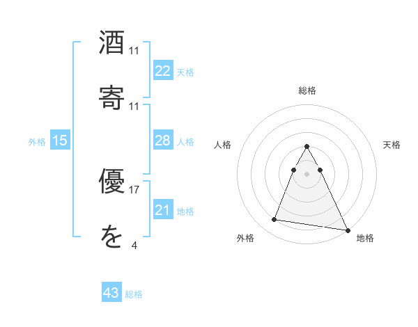 酒寄 優をさんを姓名の画数から五運を鑑定