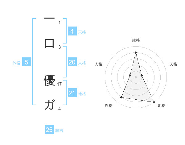 一口 優ガさんの地格は21画の5点!