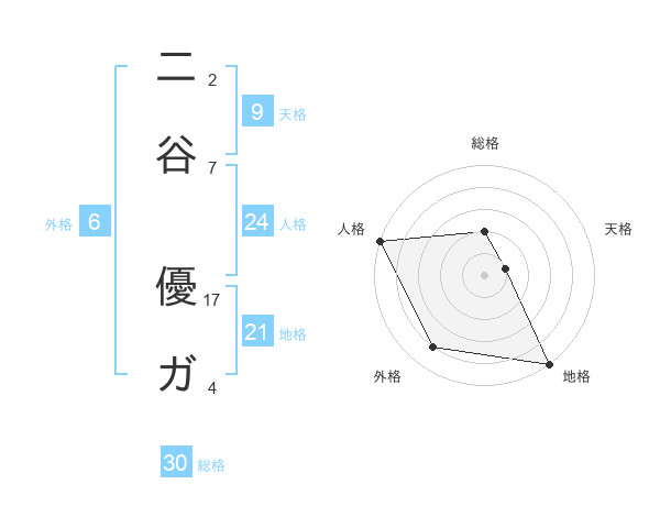 二谷 優ガさんの総格は30画の2点!