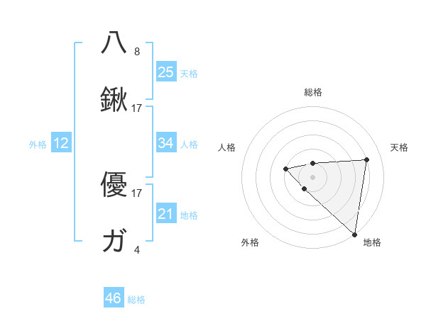 八鍬 優ガさんの地格は21画の5点!