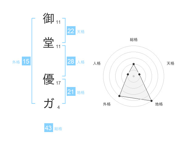 御堂 優ガさんを姓名の画数から五運を鑑定