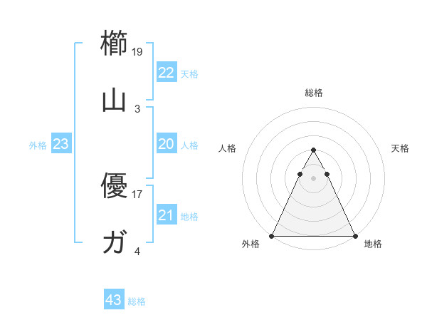 櫛山 優ガさんの総格は43画の2点!