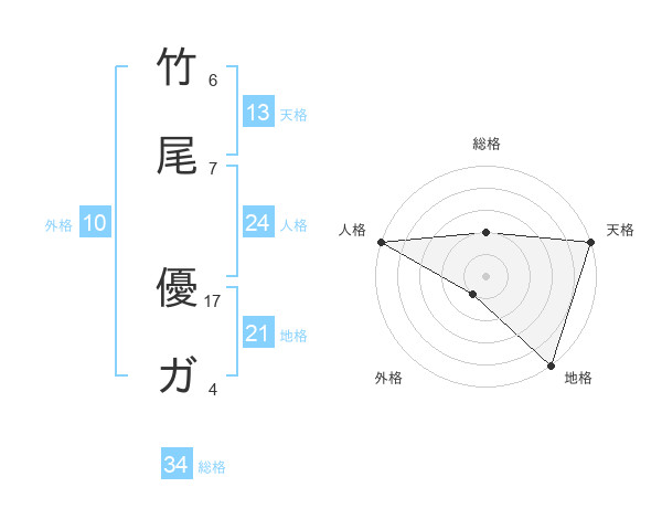 竹尾 優ガさんを姓名の画数から五運を鑑定