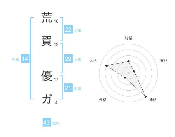 荒賀 優ガさんを姓名の画数から五運を鑑定