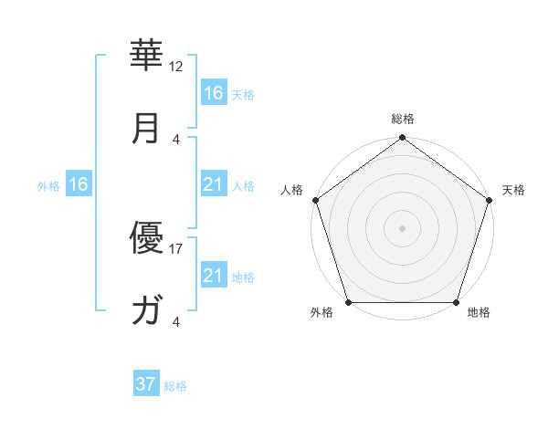 華月 優ガさんの地格は21画の5点!