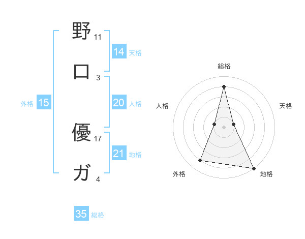 野口 優ガさんの総格は35画の4点!