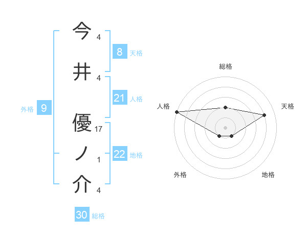 今井 優ノ介さんの総格は30画の2点!