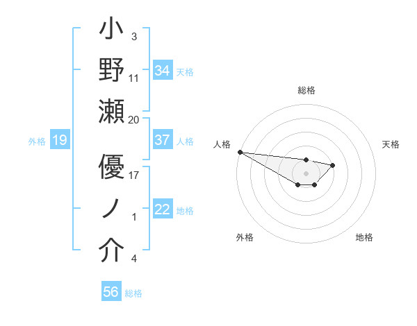 小野瀬 優ノ介さんを姓名の画数から五運を鑑定