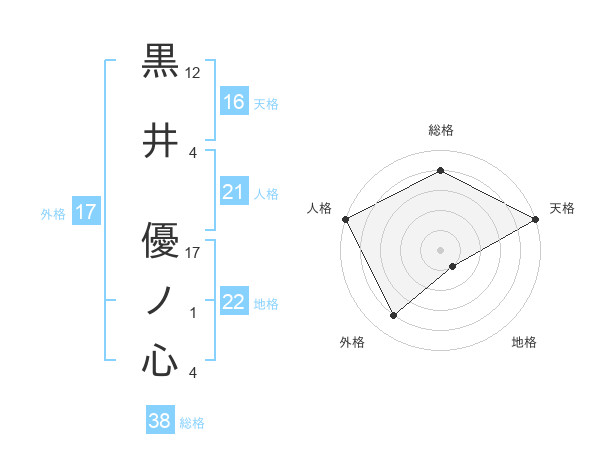 黒井 優ノ心さんを姓名の画数から五運を鑑定
