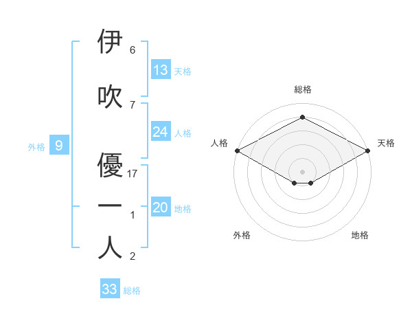 伊吹 優一人さんを姓名の画数から五運を鑑定