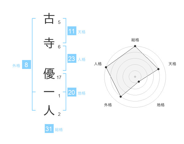 古寺 優一人さんを姓名の画数から五運を鑑定