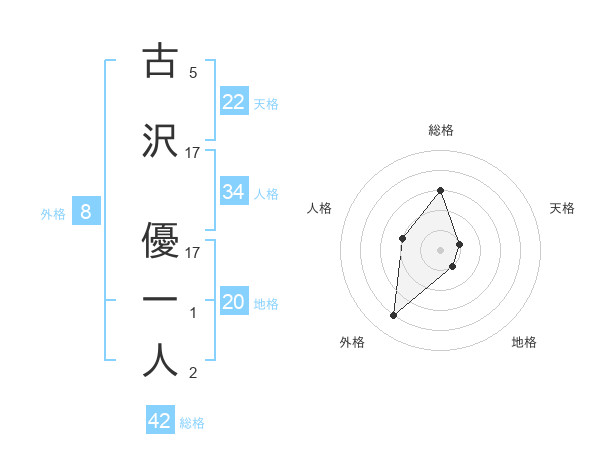 古沢 優一人さんを姓名の画数から五運を鑑定