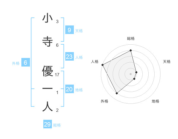 小寺 優一人さんの総格は29画の4点!