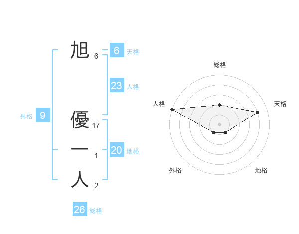 旭 優一人さんの地格は20画の1点!