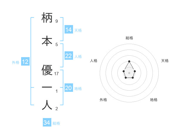柄本 優一人さんを姓名の画数から五運を鑑定