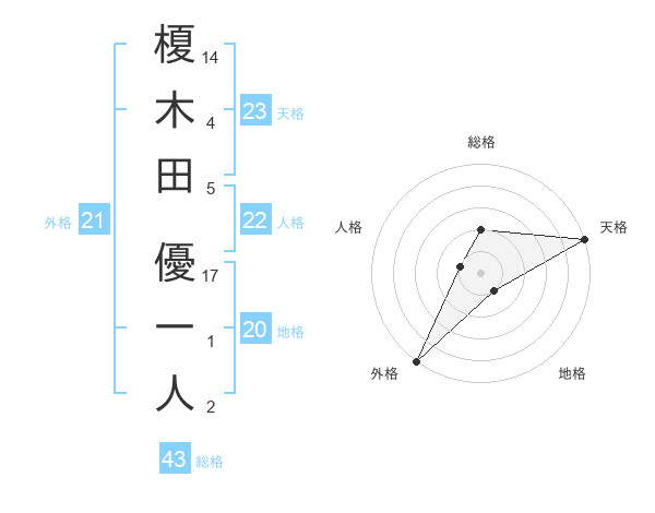 榎木田 優一人さんの天格は23画の5点!