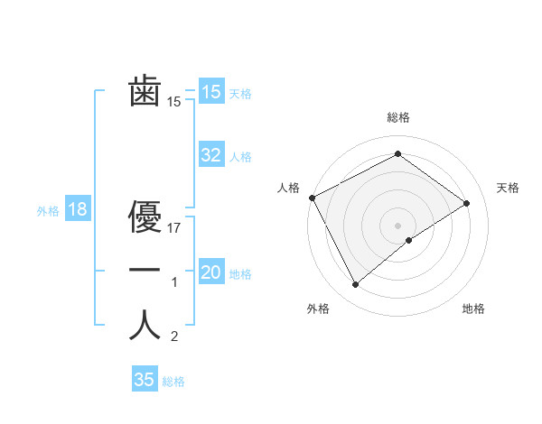 歯 優一人さんの総格は35画の4点!