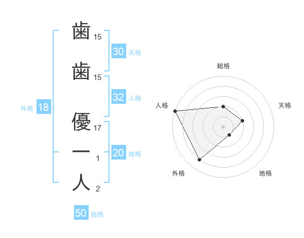 歯歯 優一人さんを姓名の画数から五運を鑑定