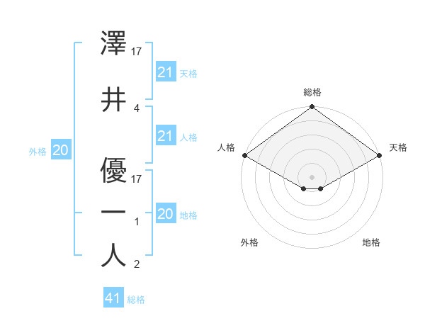 澤井 優一人さんを姓名の画数から五運を鑑定