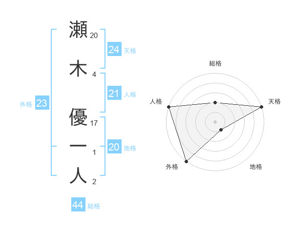 瀬木 優一人さんを姓名の画数から五運を鑑定