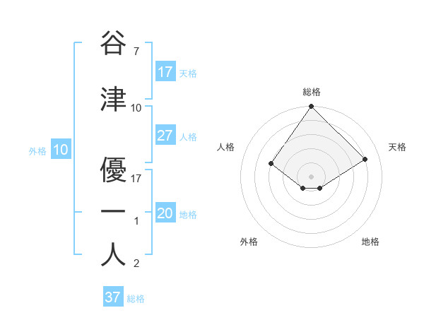 谷津 優一人さんを姓名の画数から五運を鑑定