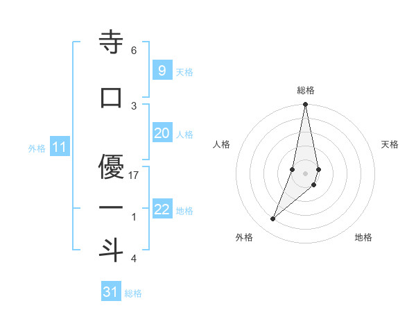 寺口 優一斗さんの総格は31画の5点!
