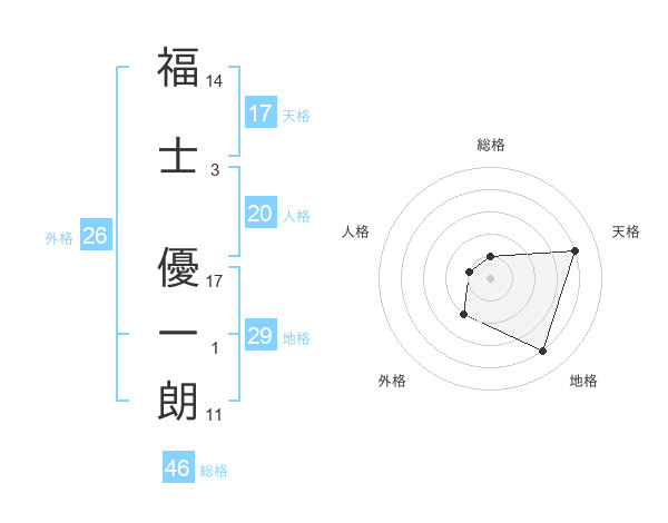 福士 優一朗さんを姓名の画数から五運を鑑定