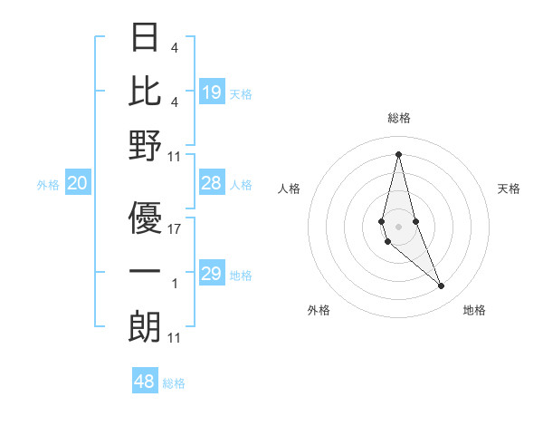 日比野 優一朗さんの総格は48画の4点