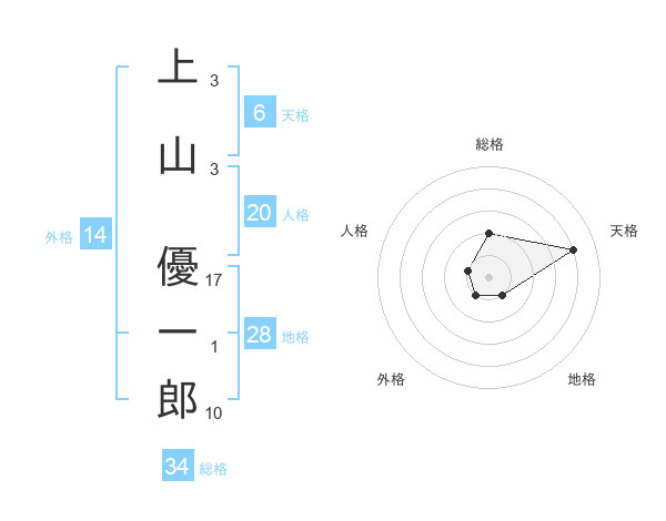 上山 優一郎さんを姓名の画数から五運を鑑定
