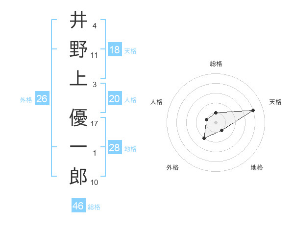 井野上 優一郎さんを姓名の画数から五運を鑑定