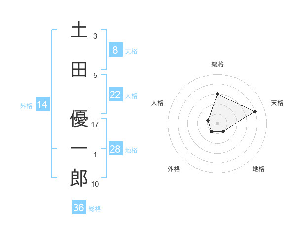 土田 優一郎さんの天格は8画の4点