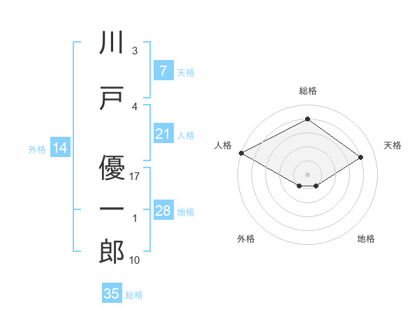 川戸 優一郎さんの総格は35画の4点!