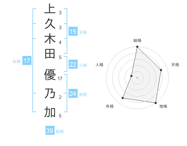 上久木田 優乃加さんを姓名の画数から五運を鑑定