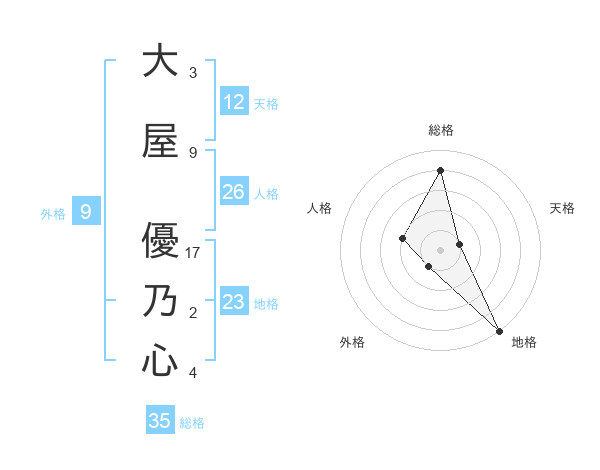 大屋 優乃心さんを姓名の画数から五運を鑑定