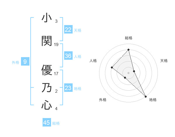 小関 優乃心さんの総格は45画の4点!
