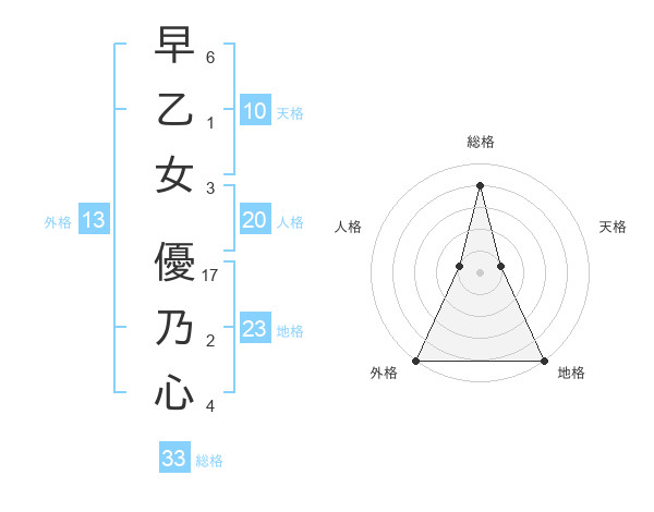 早乙女 優乃心さんを姓名の画数から五運を鑑定