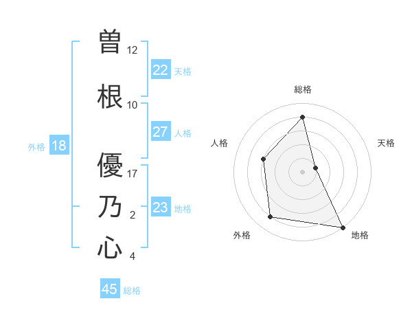 曽根 優乃心さんを姓名の画数から五運を鑑定